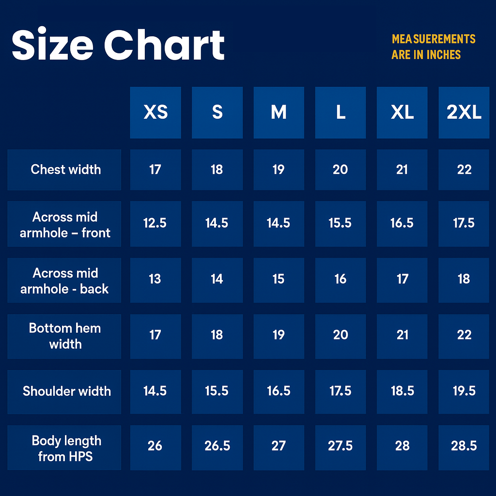 Across Mid Armhole - Back | 11.5 | 12 | 12.5 | 13 | 13.5 | |